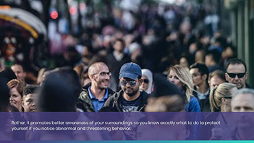 “Most people walk around with their head in the clouds and their earphones in, unaware of who's standing around them or where the next exit is,” Burris says. “Unfortunately, this lack of awareness makes them vulnerable targets for theft, assault, and other dangers.”
